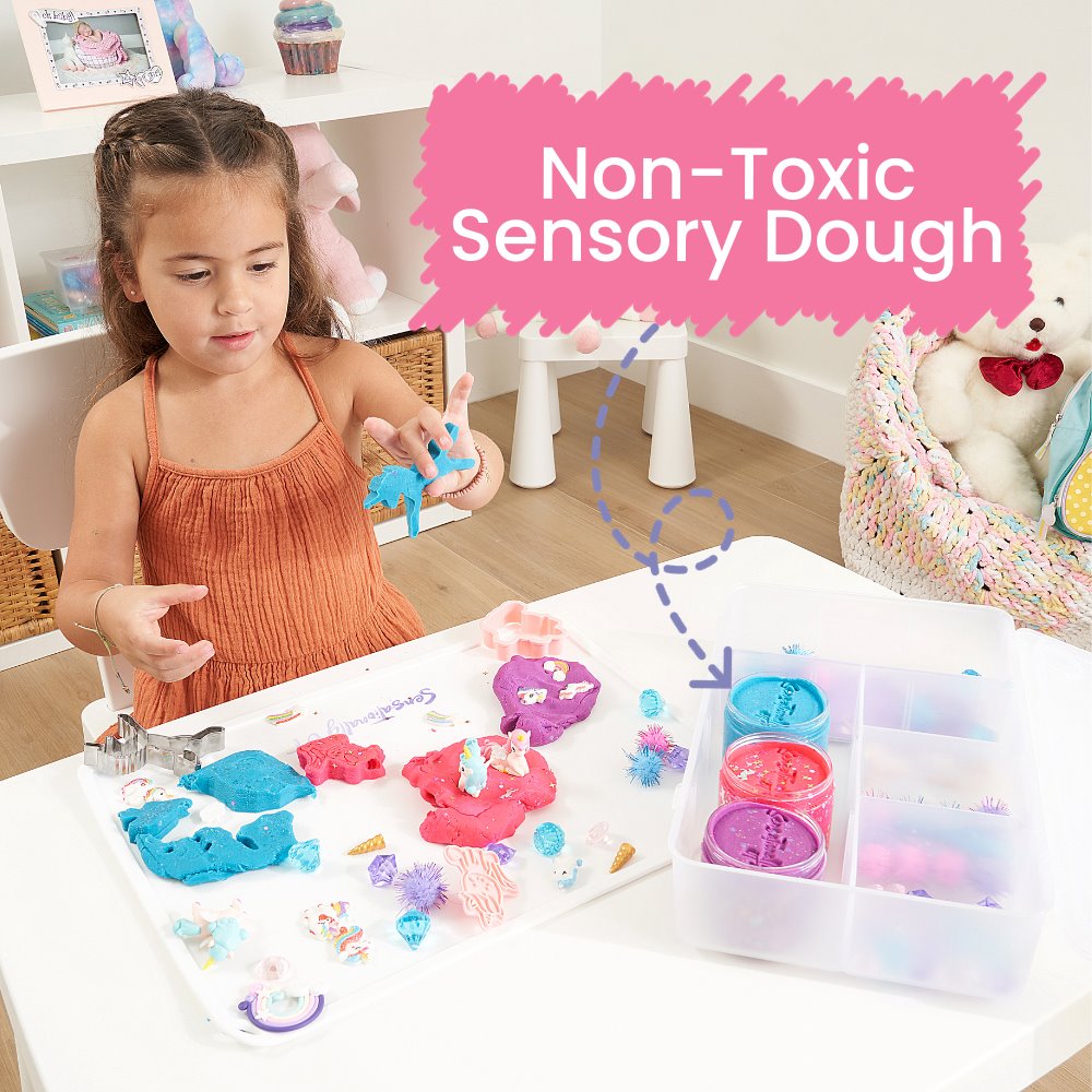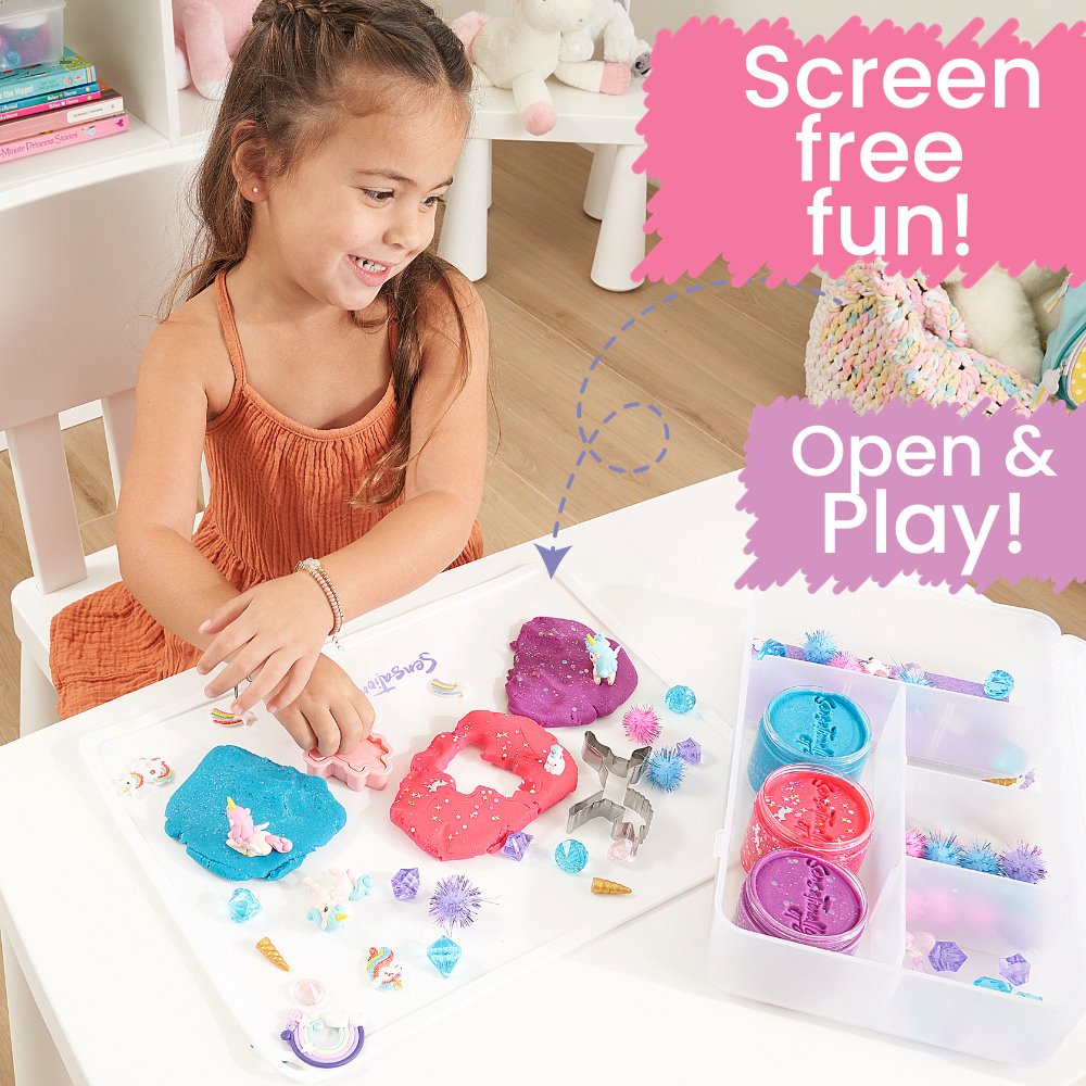 Who doesn't love unicorns and rainbows?? Glittery unicorn dough and tons of fun accessories.